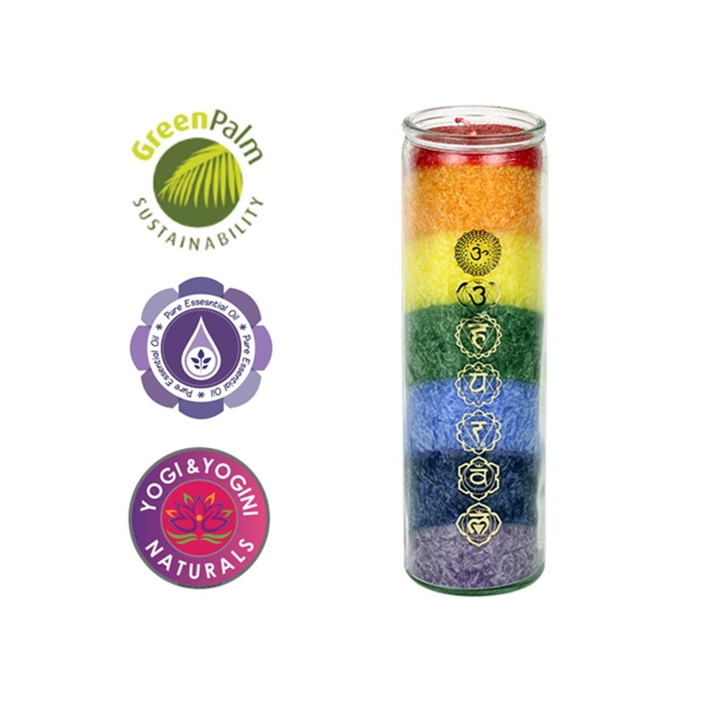 7 Chakra Rainbow Ritual Tower Candle 21cm - Essential Oil Scented, 100H