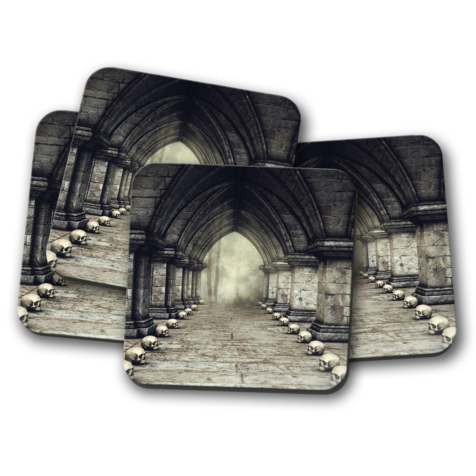 4 Set - Gothic Castle Coaster - Horror Ritual Scary Metal Fun Skulls Gift #16185
