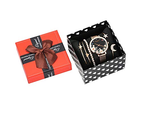 Sakura Girl Heart Watch Ladies Strap Small Exquisite Watch + Bracelet Gift Box Set Golden Black Plate