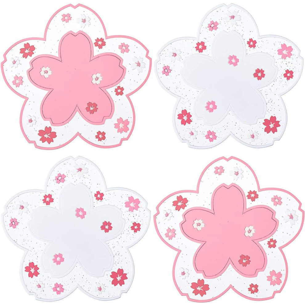 Decorative Sakura Coasters For Leakproof Protection, Non-Slip Insulation Silicone, Housewarming Gift With Unique Coasters, Durable Anti Slip, Set Of 4