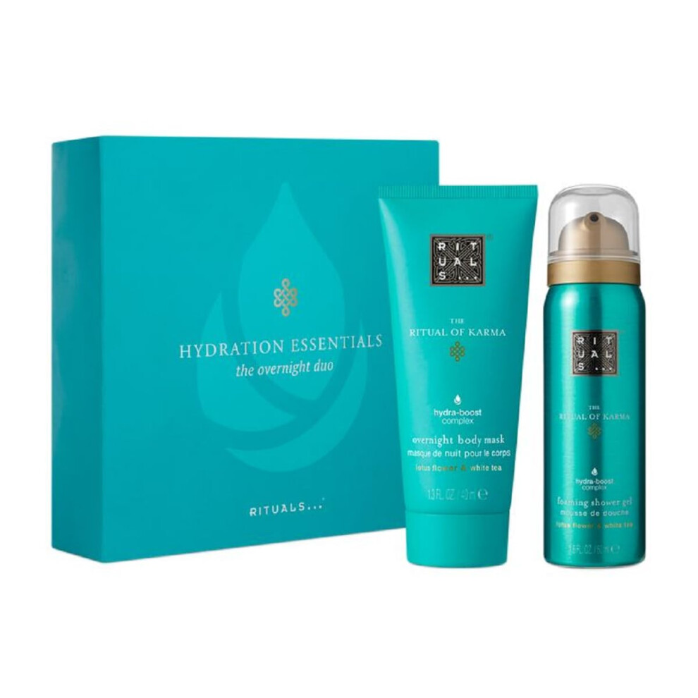 of Karma Hydration Overnight Duo,The Ritual Of Karma Body Mask,& Foaming Shower Gel,enriched with white tea & lotus,ensure our indulgent pack will