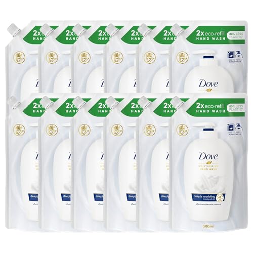 Dove Moisturising Eco-Refill for Liquid Hand Wash Effective Antibac Cleansing for 24H Nourishment and Instantly Soft Skin 500ml, 12 Pack