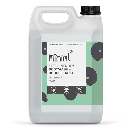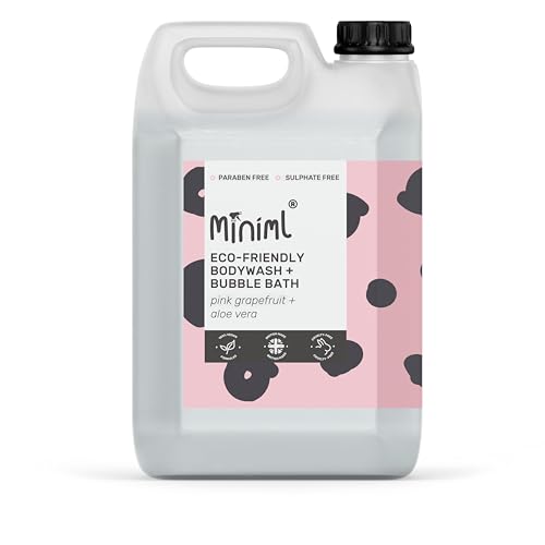 Miniml All Natural Body Wash and Bubble Bath - 5L Refill Moisturising Pink Grapefruit and Aloe Vera Sensitive Skin Eco Shower Gel Bath Soak - Vegan Friendly Hand, Face & Body High Foam Scrub