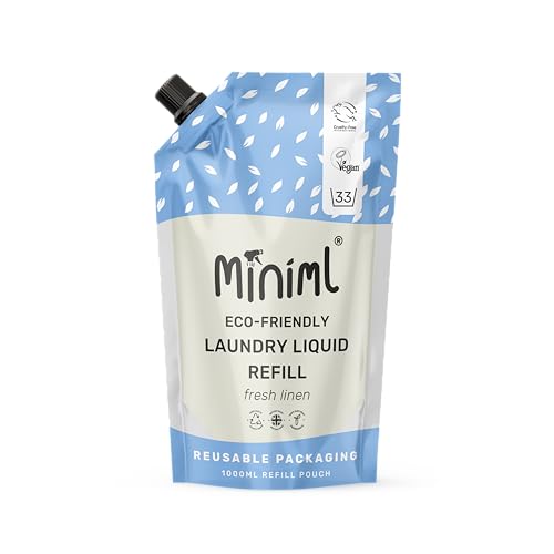 Miniml Eco Laundry Liquid Washing Detergent 1L Refill - Natural Non Bio Fresh Linen Scented Clothes for Machine Wash or Delicate Hand Cleaning - 100% Vegan & Cruelty Free (33 Washes)