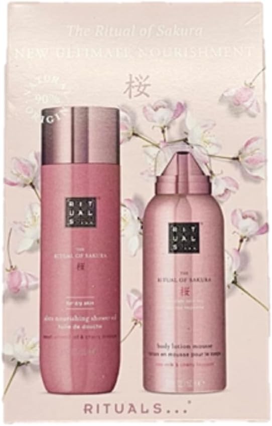 Rituals The Ritual of Sakura Ultimate Nourishment Kit with Shower Oil 75ml and Body Lotion Mousse 50ml, Beauty Gift Set