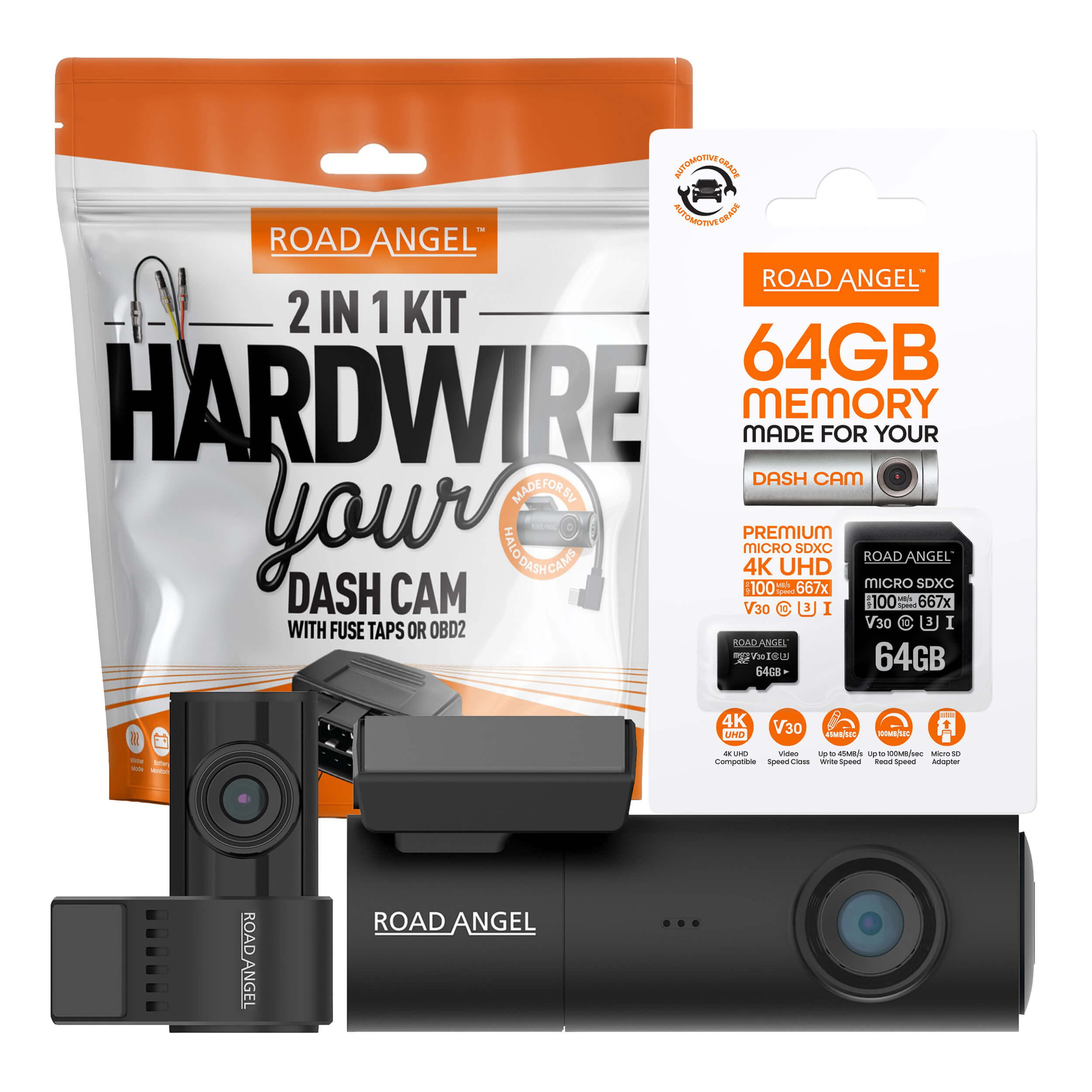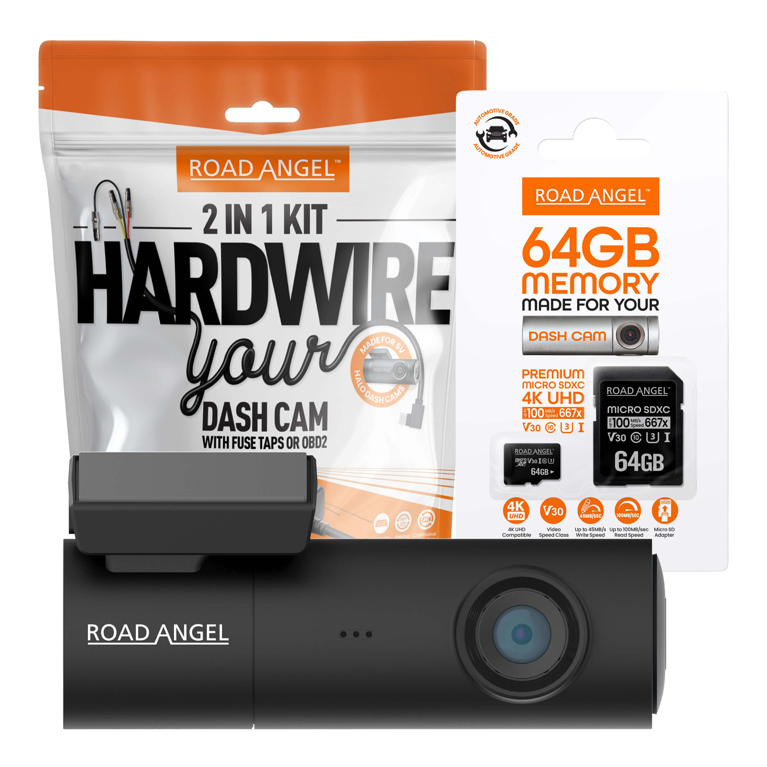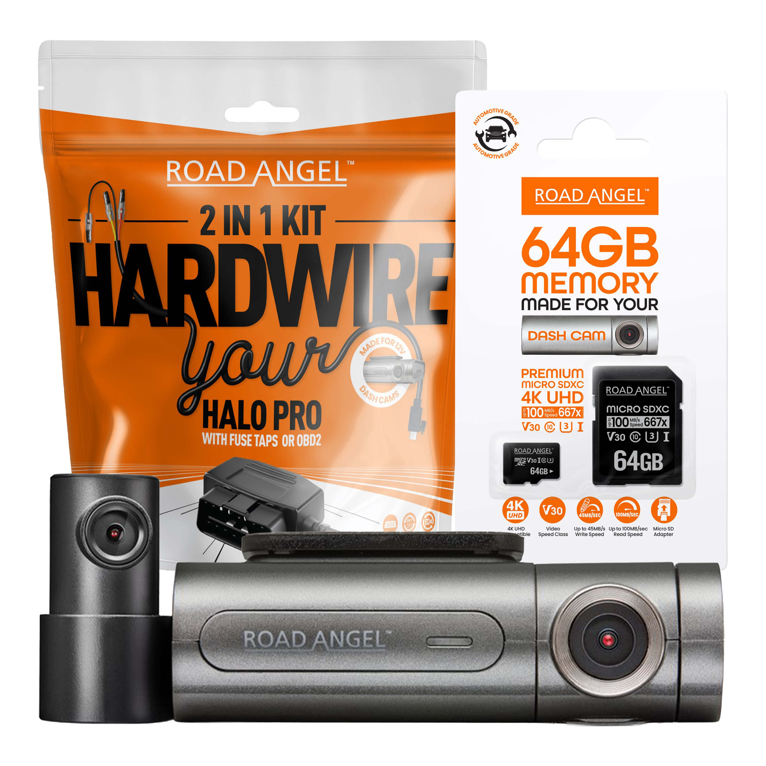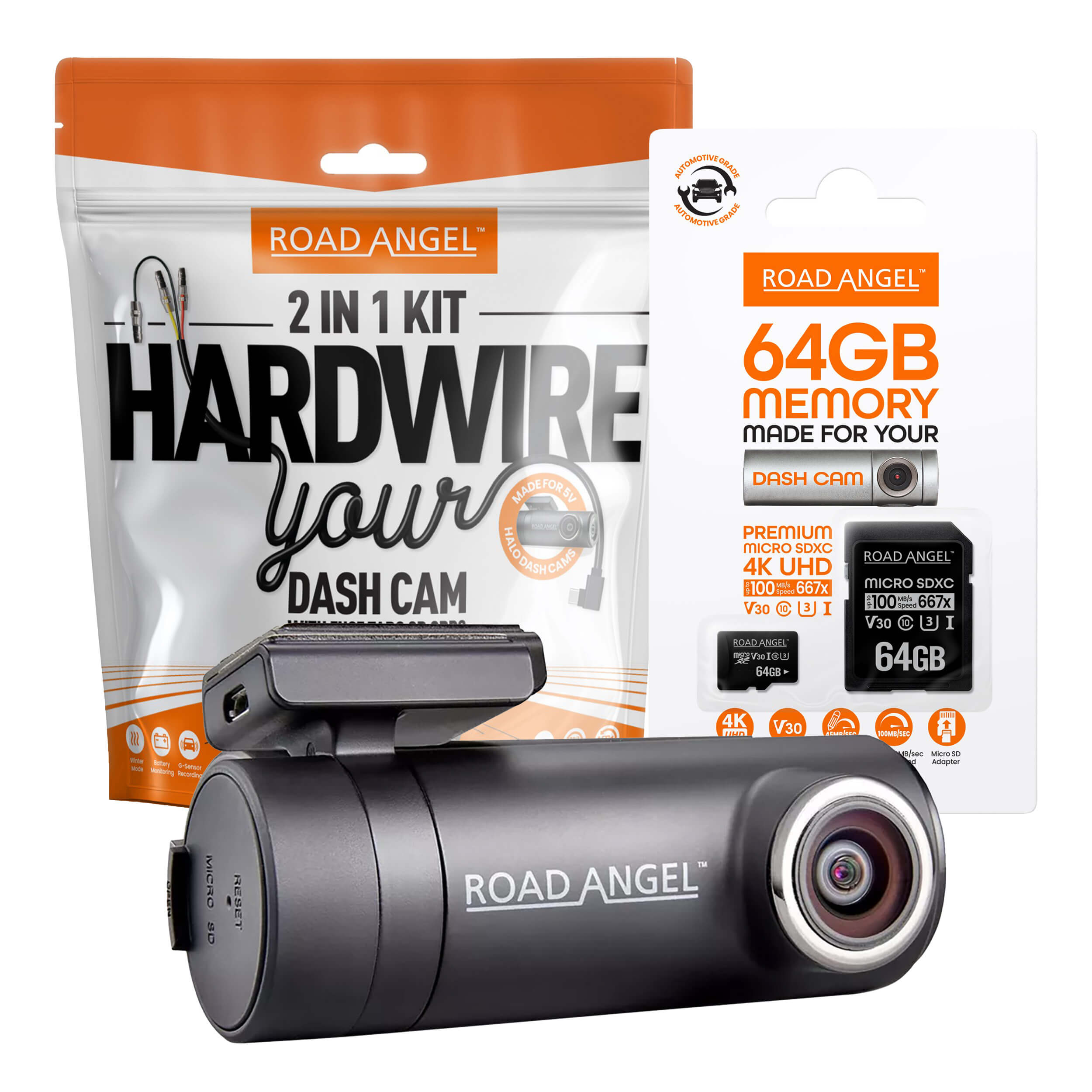Road Angel Deluxe Halo Pro 2K+ Dashcam, SD Card & Hardwiring Bundle