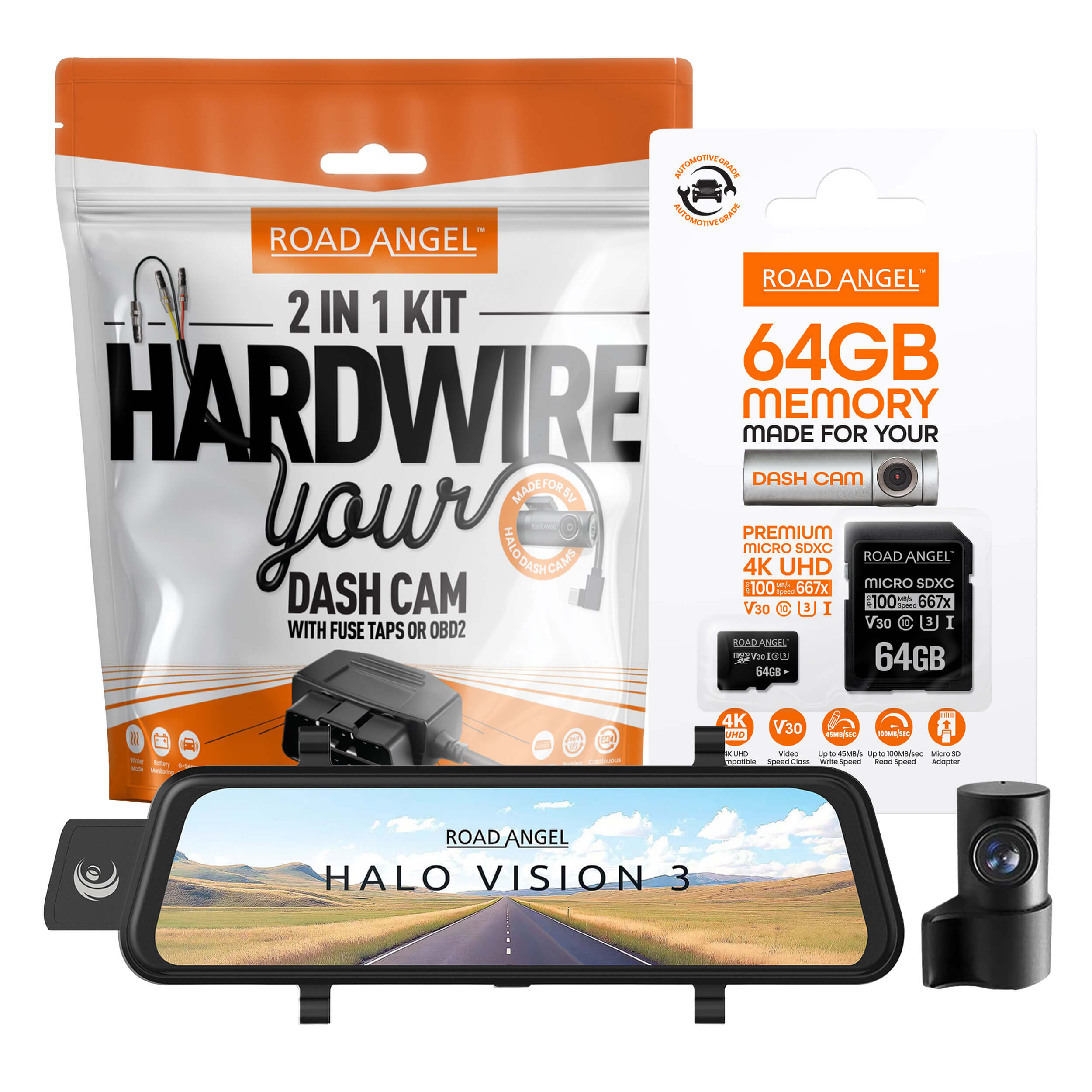 Road Angel Halo Go Dashcam, SD Card & Hardwiring Bundle