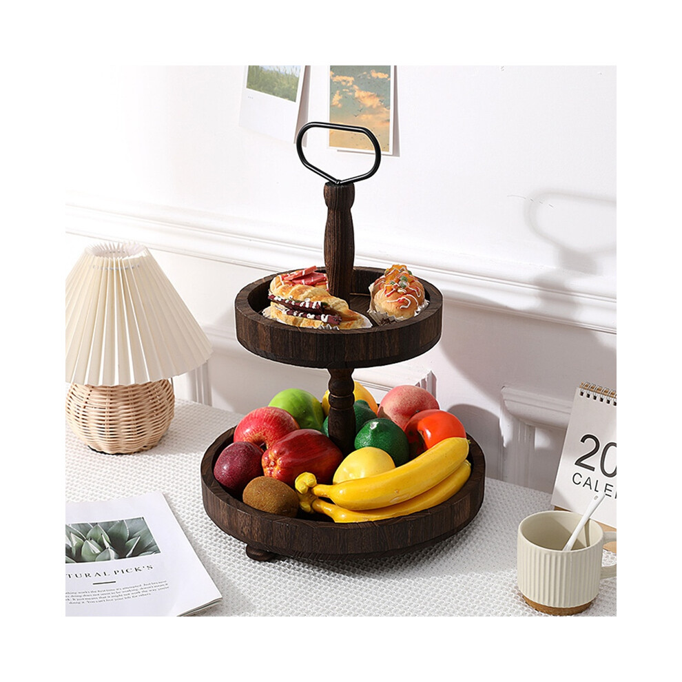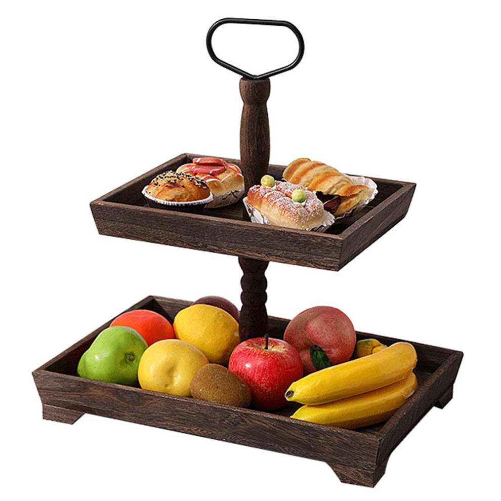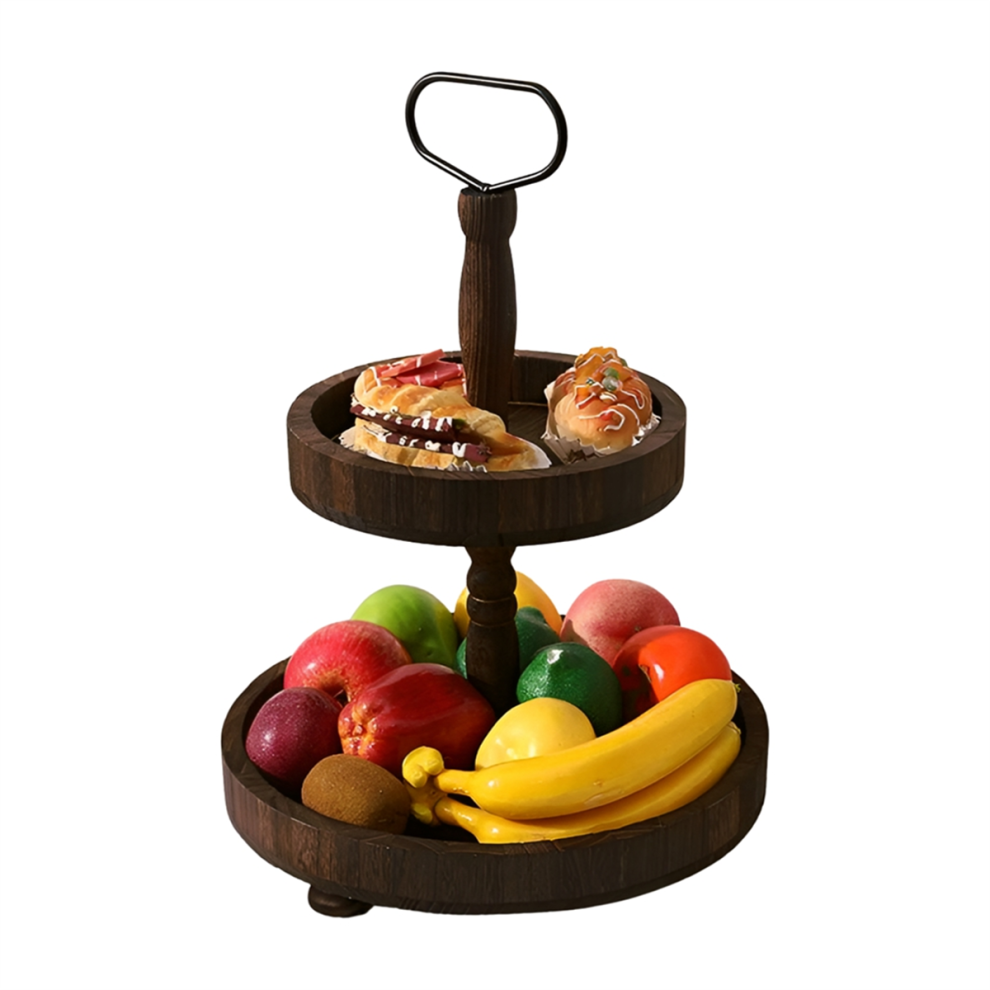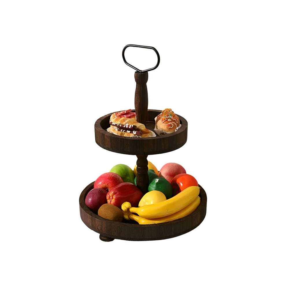 Dessert Stand Double Layer Cake Tray Decoration Display Stand,Heavy Roasted Color