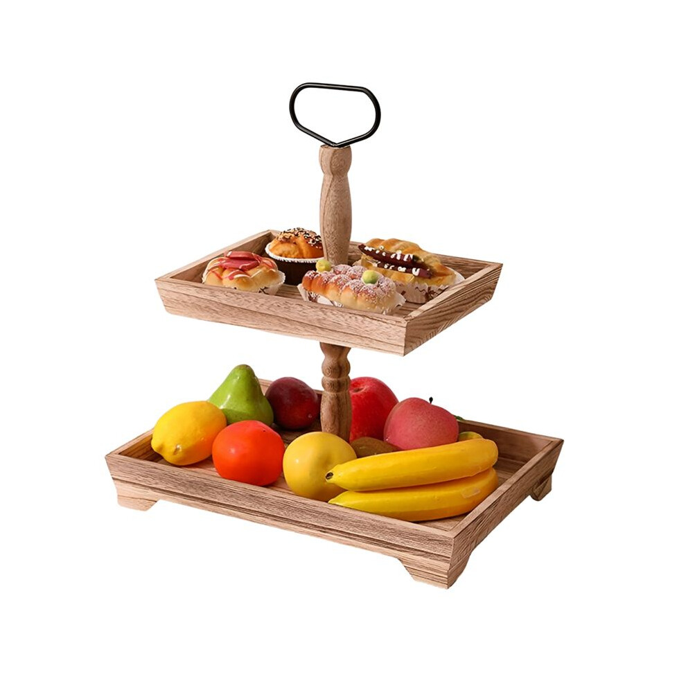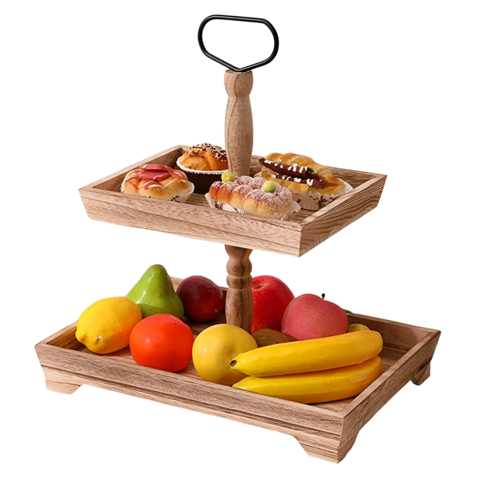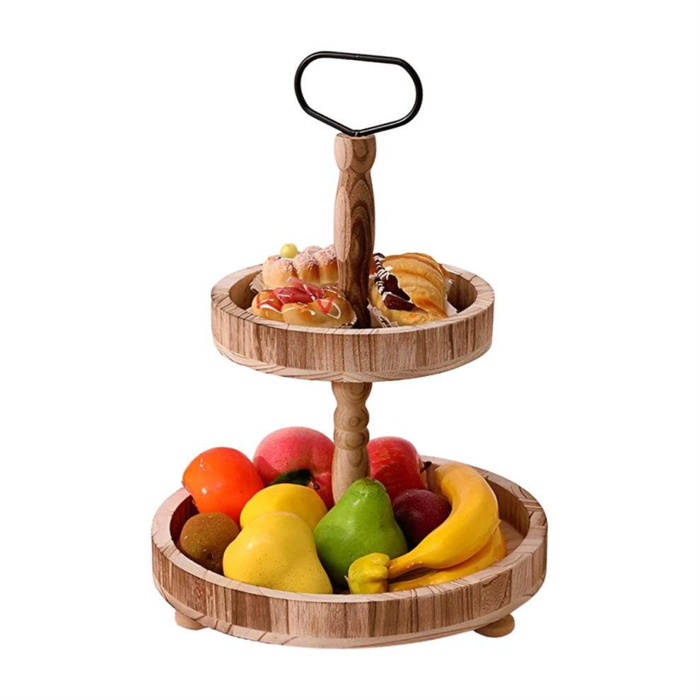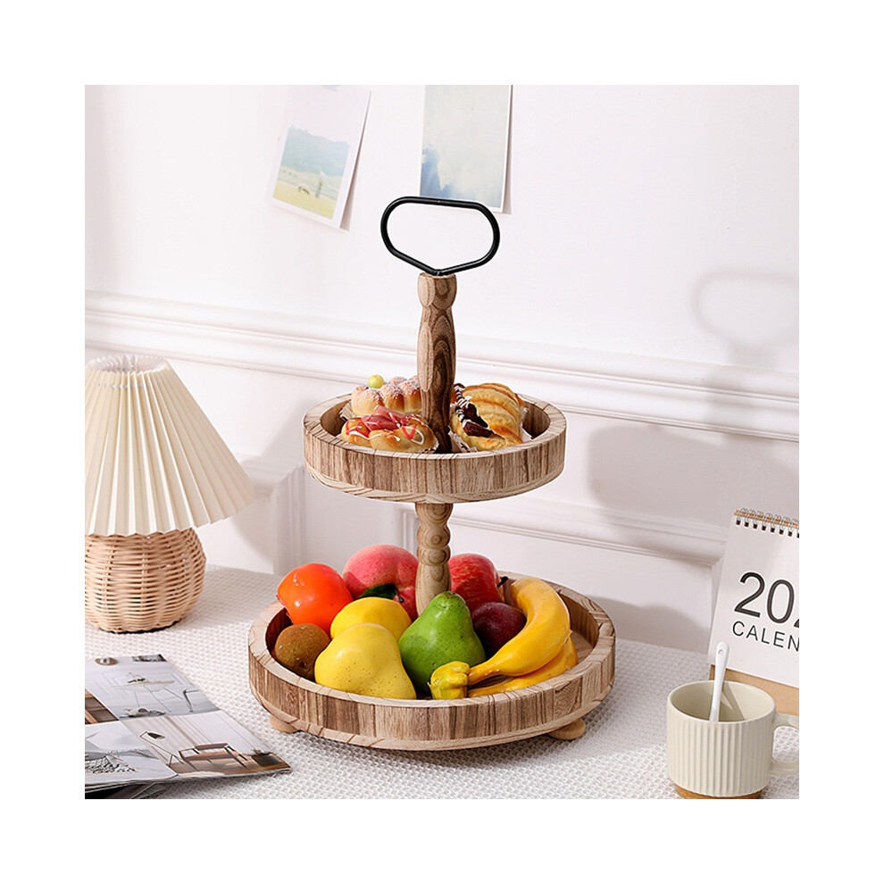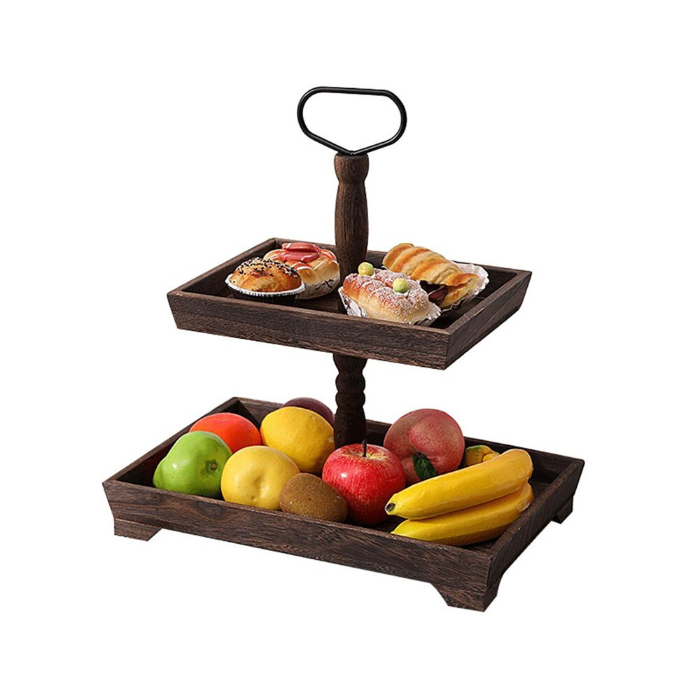 Dessert Stand Double Layer Cake Tray Decoration Display Stand,Heavy Roasted Color