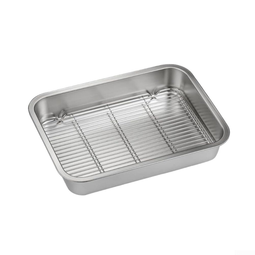 Stainless Steel Oven Safe Baking Tray with Cooling Rack Size 31x24x5 Cm For Cookies Cakes Roasted Dishes