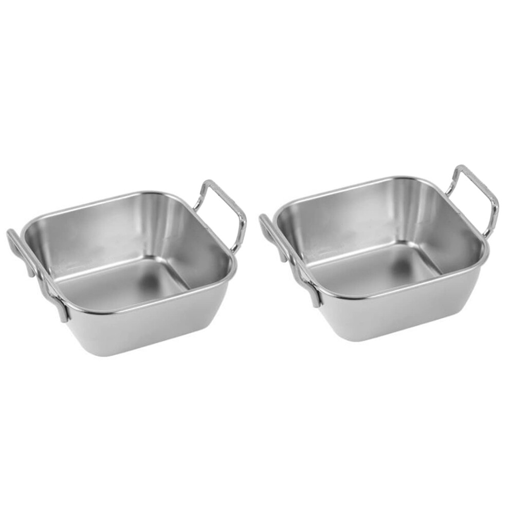 Stainless Steel Food Storage Tray Set of 2 with Double Ears Roasted Chicken Square Plates for Snacks and Fruits