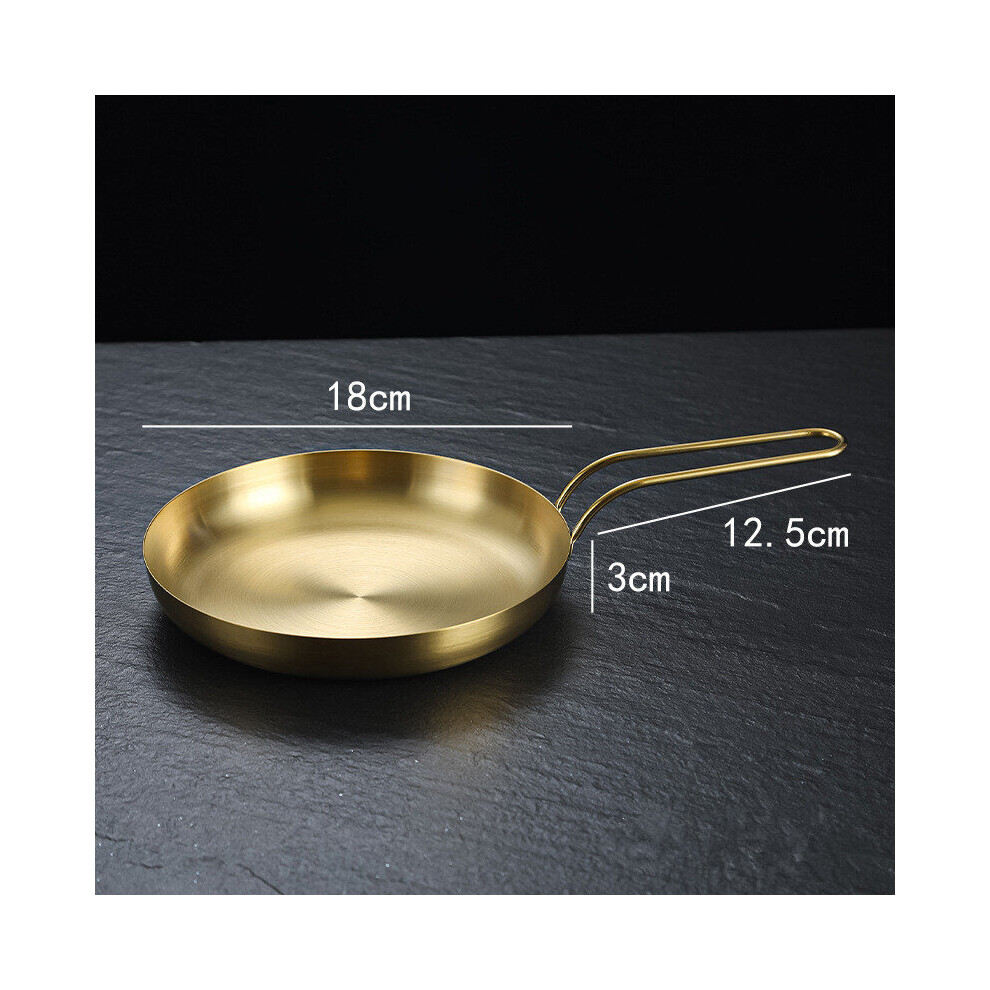 (a-18cm Golden(Handle)) Durable Stainless Steel Golden Sliver Frying Pan Steak Skillet Roasting Cooking Pots Kitchenware Kitchen Cookware Accessories