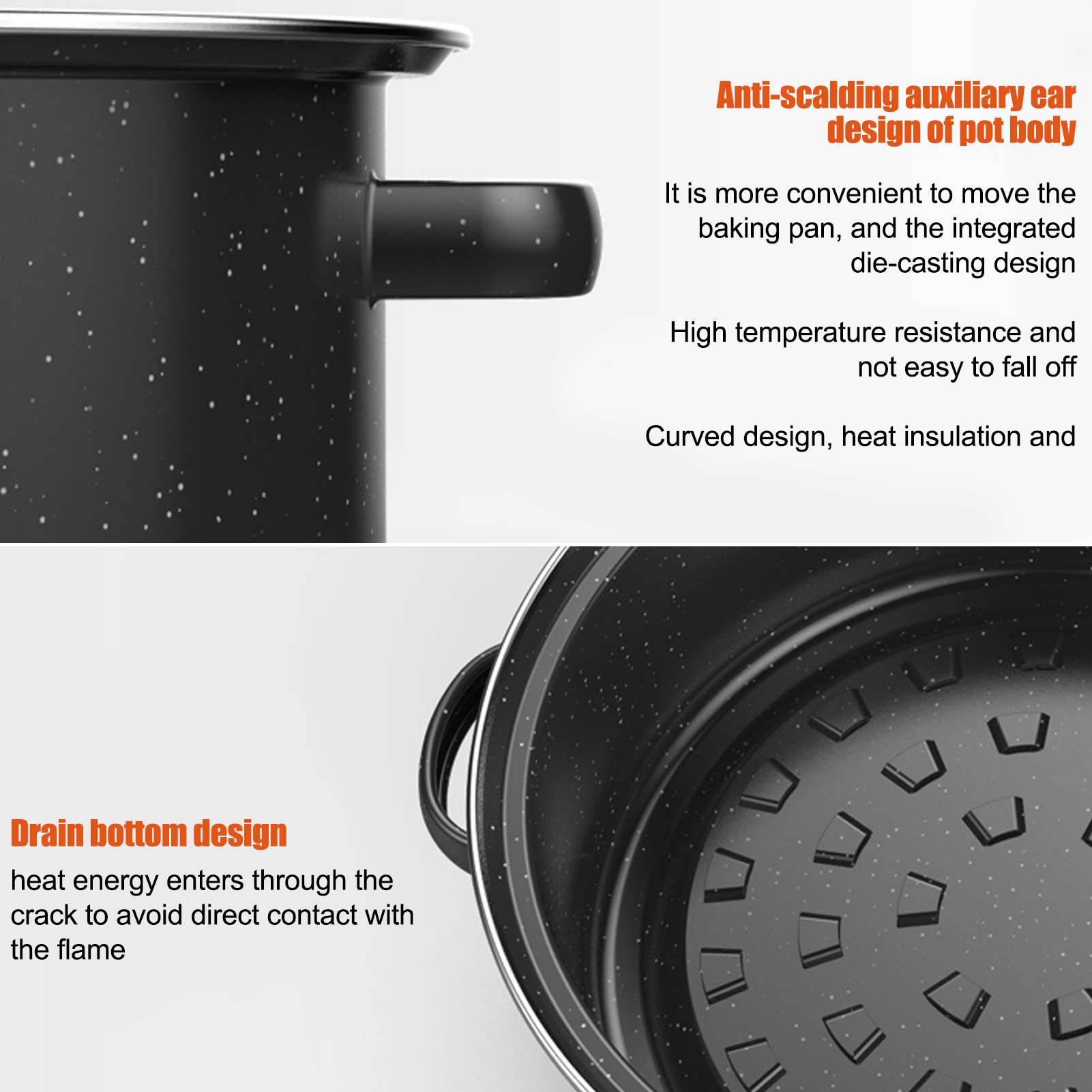 ]Roasting Pan Black Speckled Finish Household Non Stick BBQ Pot Roast Pan With