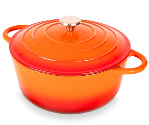 Nuovva Enamelled Cast Iron Dutch Oven Pot with Lid – 5 Quart Casserole Dish – Ceramic Dutch Oven for Bread Baking, Roasting, Braising & Stews – Oven Safe up to 500°F – 24cm Orange