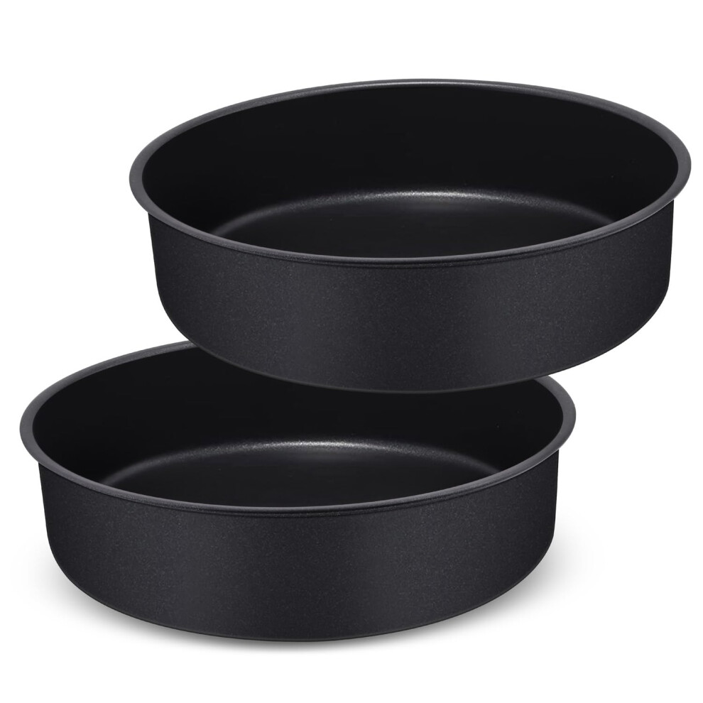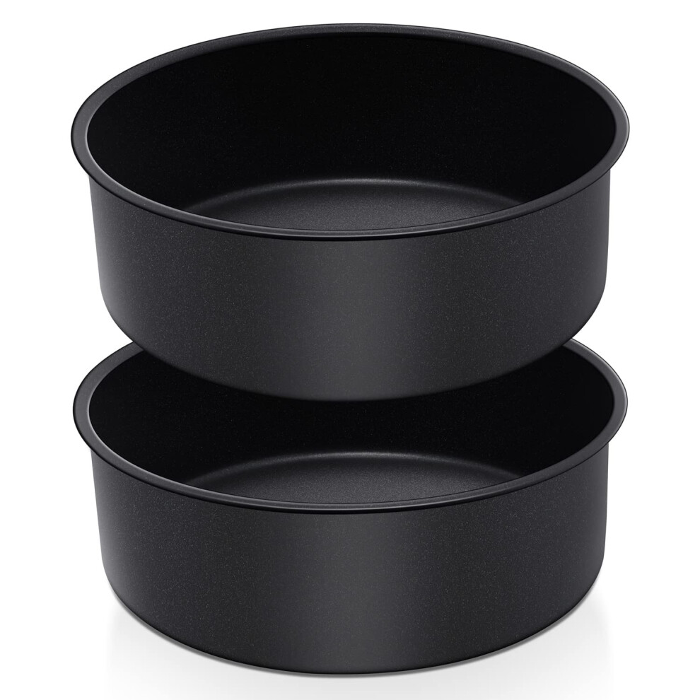 HaWare 8 inch Cake Tin Set of 2, Non-Stick Stainless Steel Round Baking Pan for Baking Roasting Serving, Birthday Wedding Layer Cake Tins, Healthy & Non-Toxic, Rust Resistant (20cm, Black)