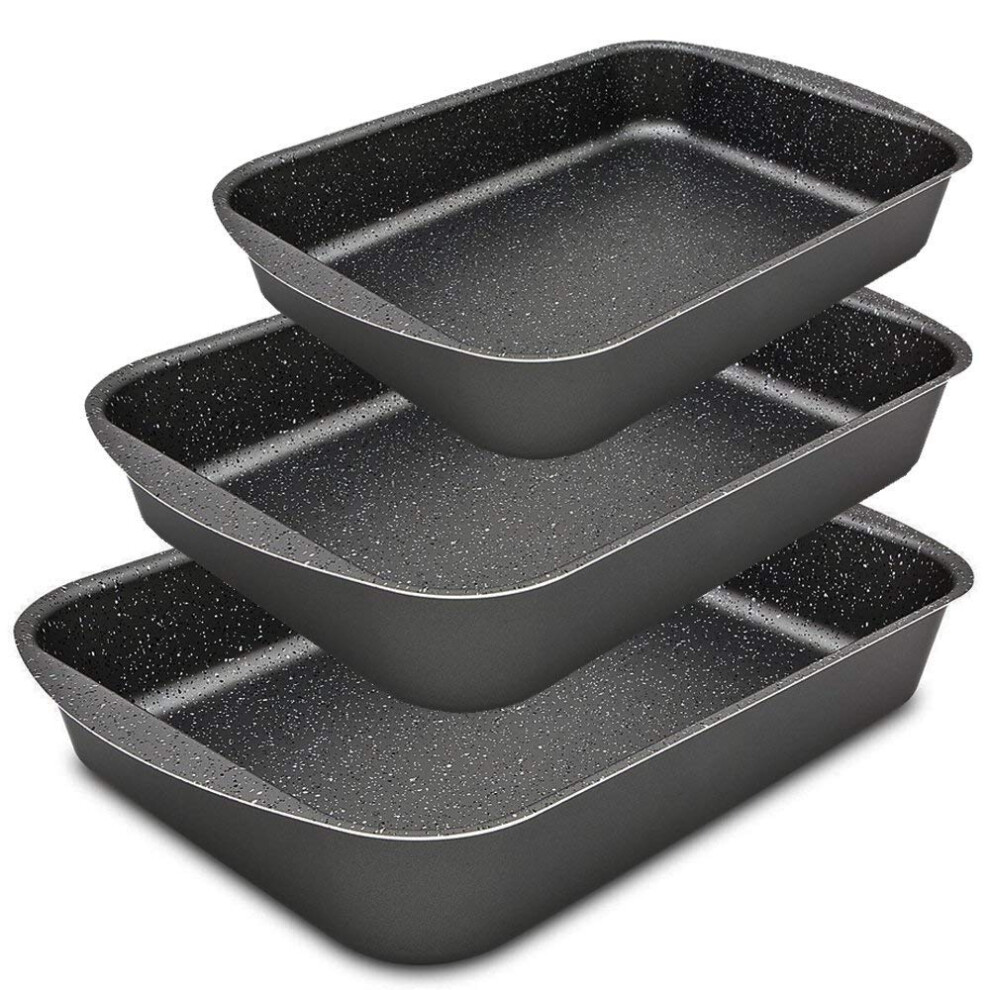 Oven Tray Set Baking Roasting Trays Non Stick Cake Tins Cooking Carbon Steel Pan
