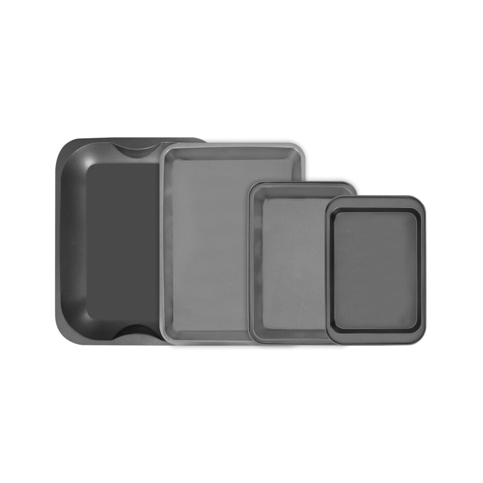 Set of 4 Non Stick Roasting Tins / Trays | Carbon Steel Oven Tray Set with Goldflon Coating