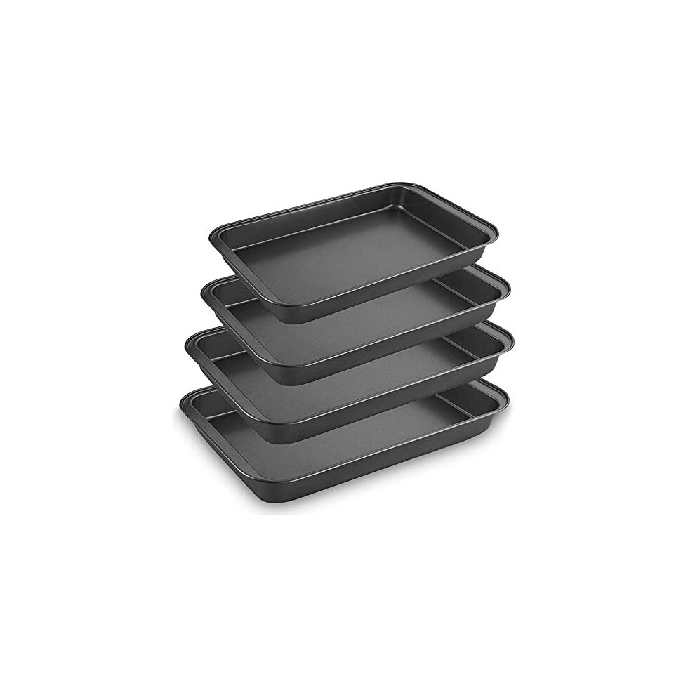FWEEK 4 Piece Baking Trays for Oven Non Stick Roasting Tins- Heavy Duty Carbon Steel (PFOA Free) Cooking Oven Trays for Baking Food - Dishwasher Safe