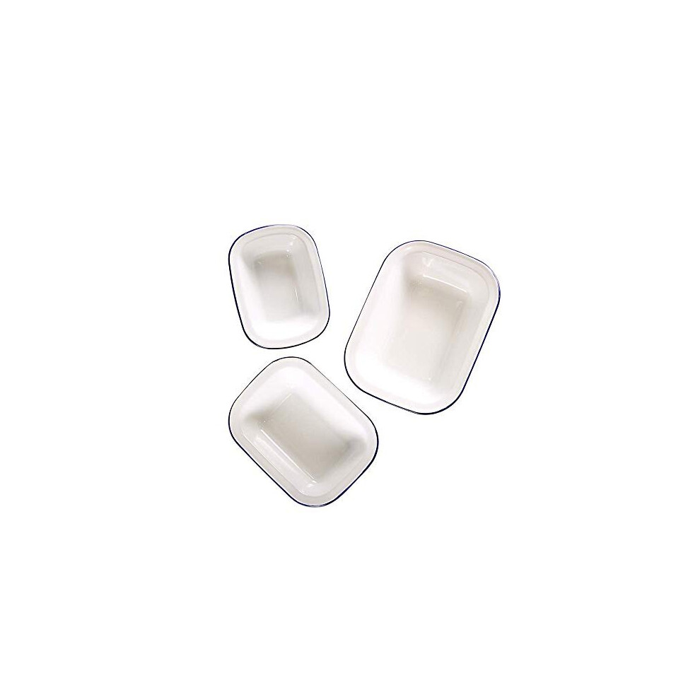 Webake Enamel Pie Dishes Enamelware Roasting Tins 3-Pack Baking Tray Rectangular Roaster Ceramic Cake Pan Food Containers - Solid White with Blu