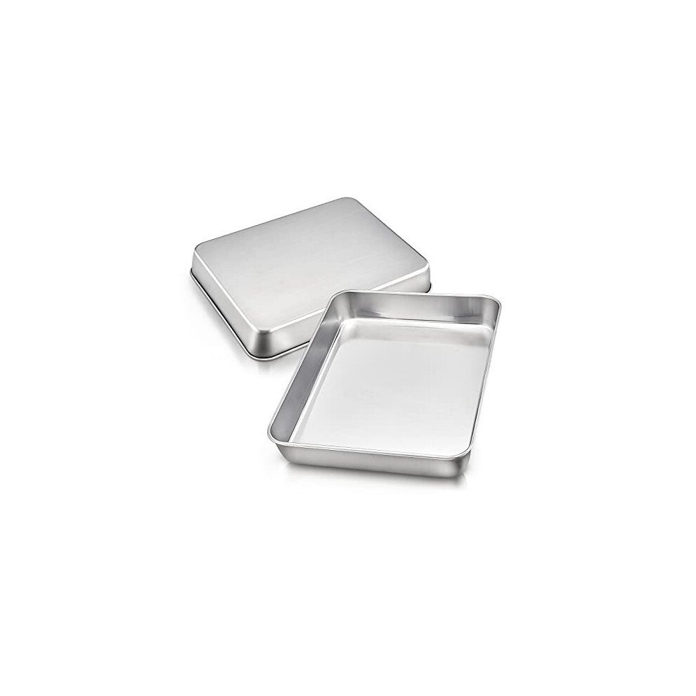 Small Oven Tray Set of 2, Baking Sheet Pans Stainless Steel Rectangle Cake Tins, Deep Roasting Pans for Brownie/Lasagna, 23.8 x 18 x 5cm, Healthy &