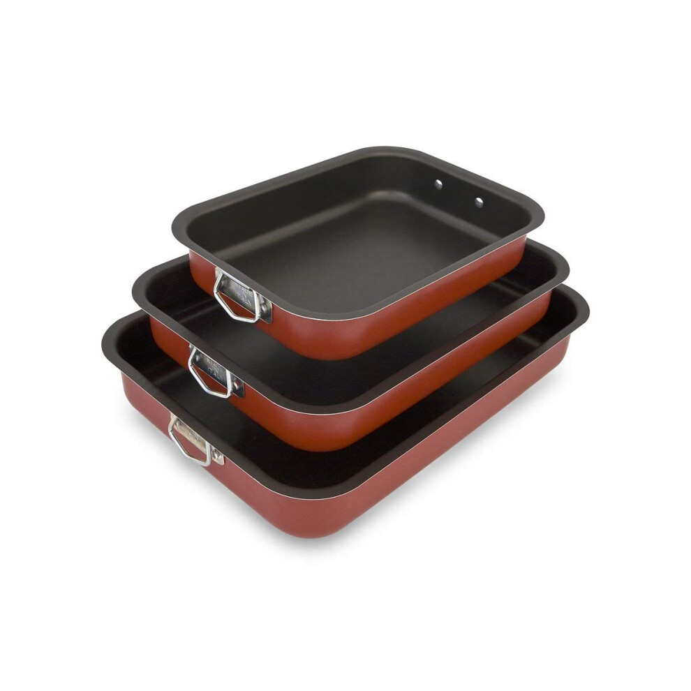 Menax - Non Stick Deep Roasting Oven Baking Tins Trays - Roasting Pan - 3 Piece Set - Made in Italy
