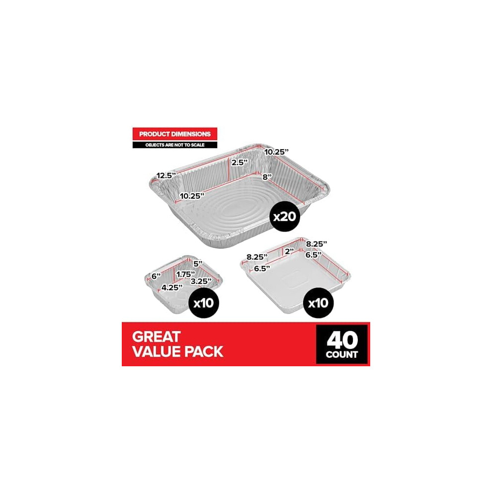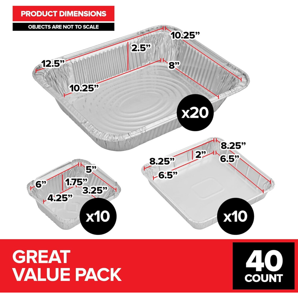 40pcs Disposable Aluminum Pans: 20x9x13", 10x8x8", 10x1-lb Heavy-Duty Foil Baking Tins & Cooking Trays for Roasting, Serving