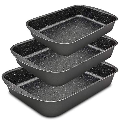 Non Stick Oven Baking Trays, 3 Pieces Carbon Steel (PFOA Free) Roasting Tins Pan