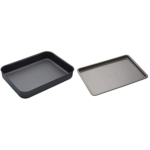 MasterClass Hard Anodised Roasting Tin, Non Stick Aluminium Roasting Tray, Teflon Coated, 37 x 26.5 cm, Black & Baking Tray, Non-Stick Oven Tray for Baking and Roasting 35x25x2cm, Sleeved