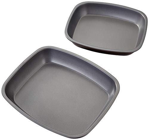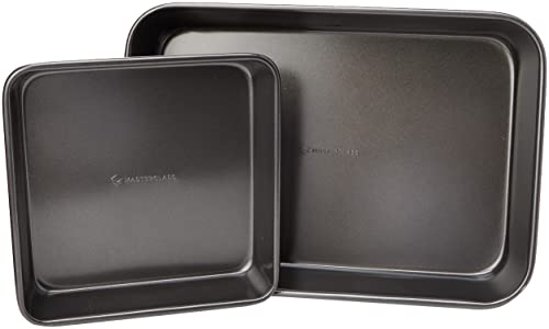 MasterClass KCMCHBSET2 Bakeware Set with Deep Roasting Tray and Square Baking Tin, Robust 1 mm Carbon Steel with PFOA Non Stick, 2 Pieces, Grey