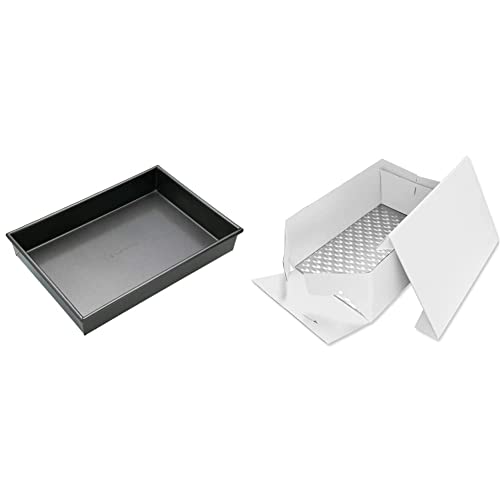 MasterClass 35 x 24 cm Baking/Roasting Tray with PFOA Free Non Stick, Grey & PME BCO895 Oblong Cake Card & Cake Box 15 x 11/38 x 27 cm, Cardboard, White