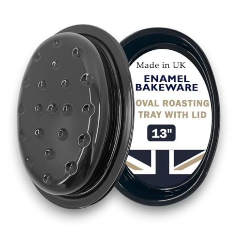 Great British Bakeware 33cm Vitreous Enamel Roasting Tin with Lid, Heavy Duty Vitreous Enamel Bakeware, Roasting Tray, Baking Tin, Made in England, Scratch Resistant, Oven Dish with Lid
