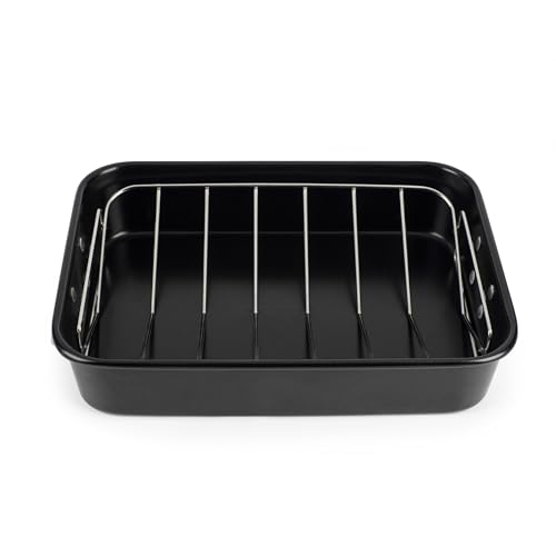 Salter Expert 34 cm Roasting Tray – Non-Stick Roaster with Stainless Steel Cooking Rack, Heavy-Duty Carbon Steel Oven Tray, PFOA-Free, Oven Safe up to 220°C, 10-Year Guarantee, 34 x 26 x 6.6 cm