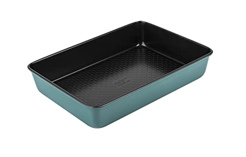 Prestige x Nadiya Roasting Tin Non Stick - Deep Large Baking Tray 33cm x 23cm, Durable Steel, Dishwasher Safe Roasting Tray Bakeware, Blue/Black, 13" x 9", Teal