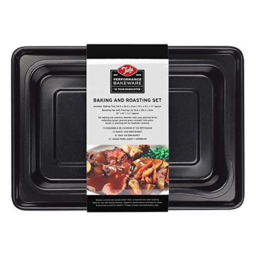Tala Performance Baking and Roasting Set, Baking Tray 34.5 x 24.4 x 2cm and Roaster with Pouring Lip 30.6 x 20.3 x 4cm, Professional Gauge Carbon Steel with Premium Non-Stick Coating