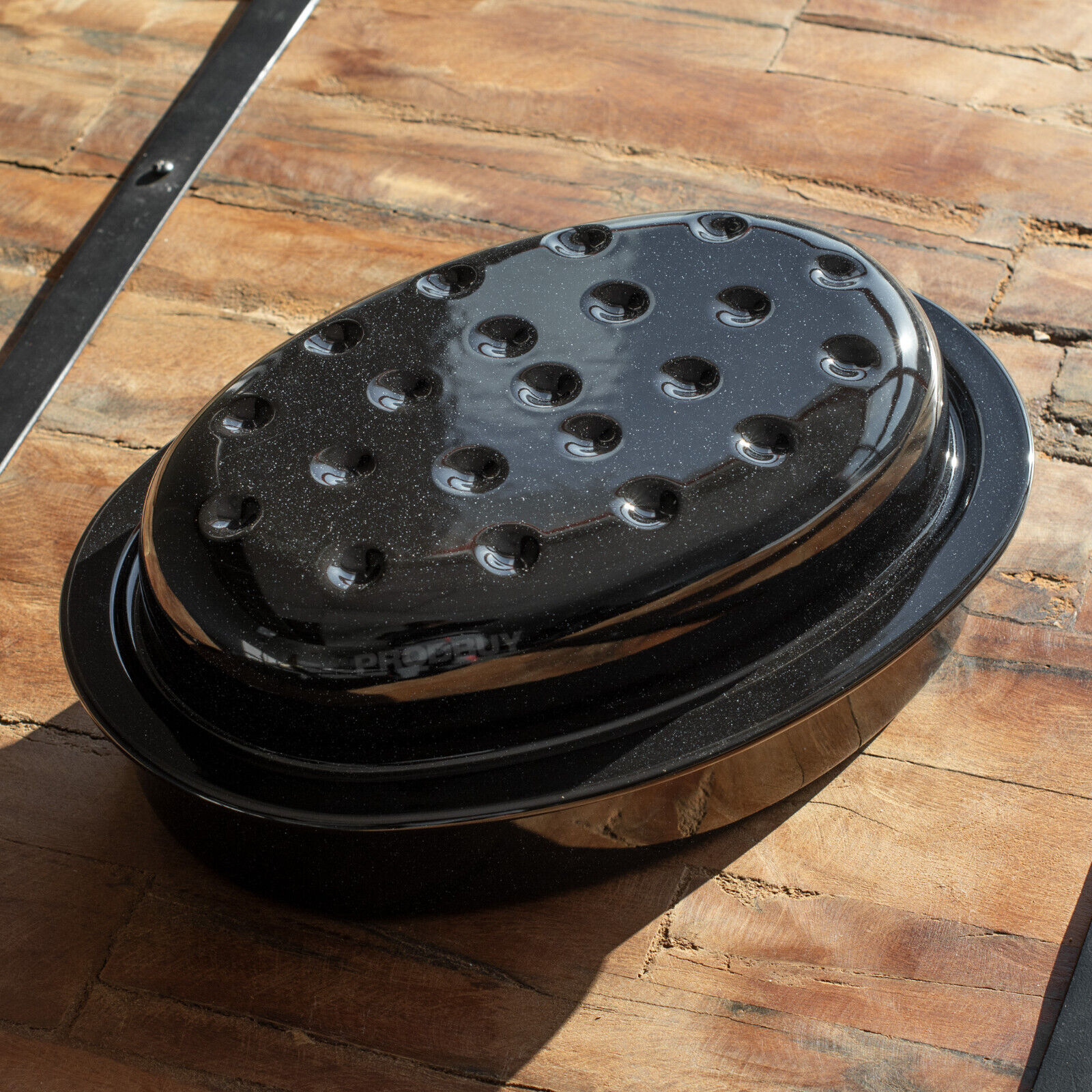 Oval Enamel Roaster Dish with Lid 33cm Black Oven Chicken Roasting Baking Tray