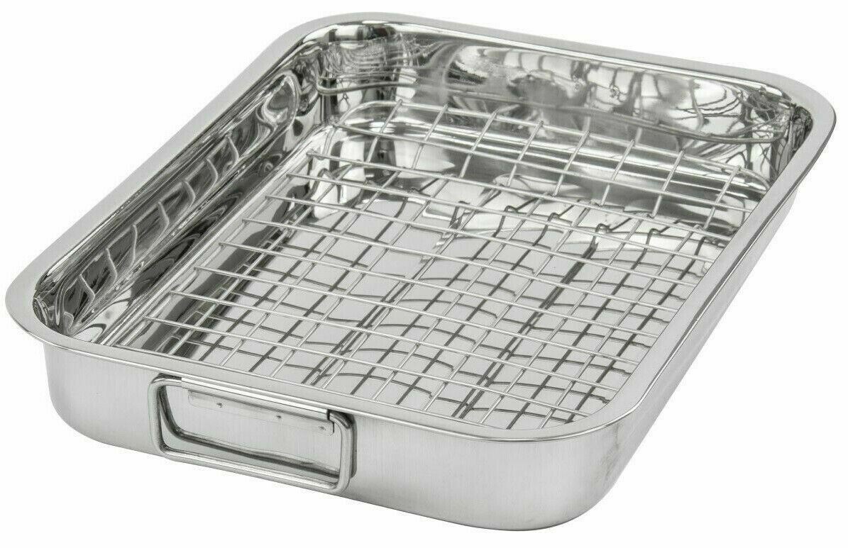 New 32cm Professional Stainless Steel Roasting Tray with Removable Rack Grill