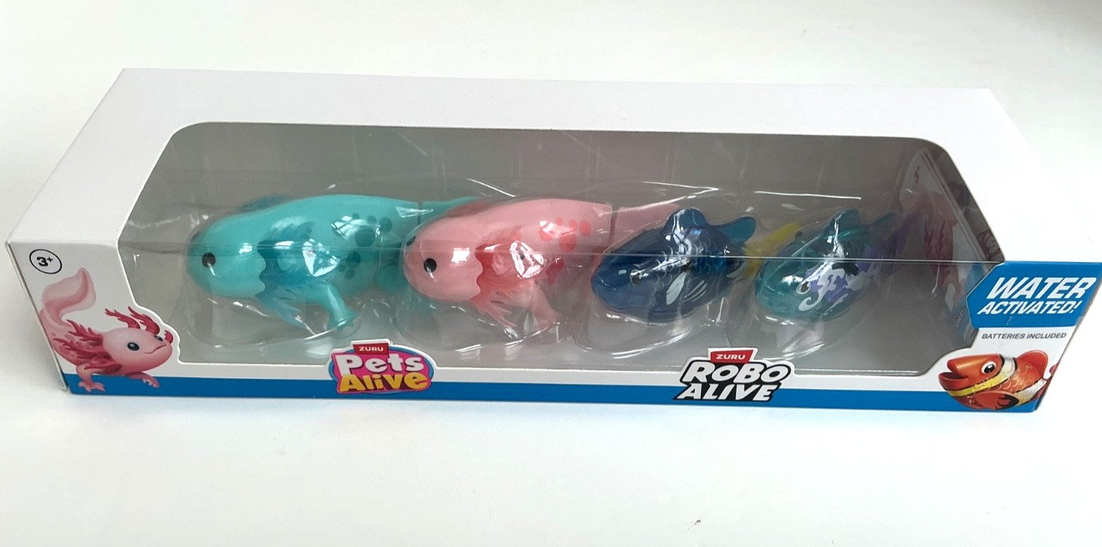 NEW 4 Pack Zuru Fish and Axolotl Robo Alive Pets Alive Water Activated