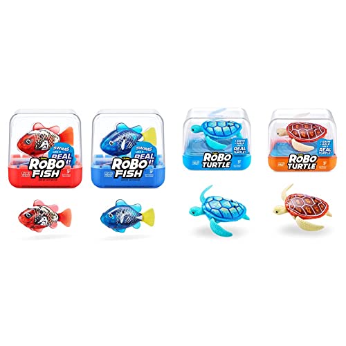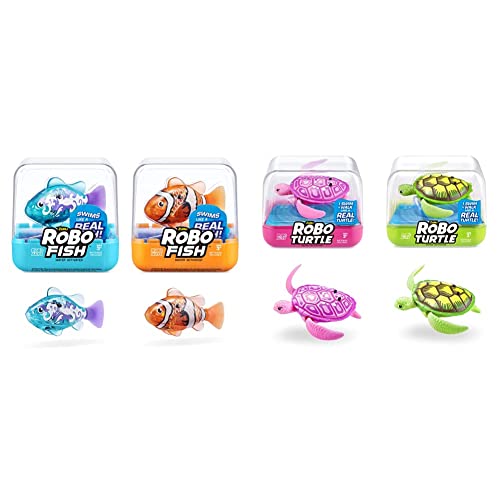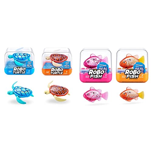 Robo Turtle Robotic Swimming Turtle electronic pet turtle & Robo Fish Series 3 Robotic Swimming Fish (Pink and Purple) electronic pet fish, summer pool toy, bath toy, (2 Pack, Pink and Purple)