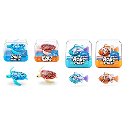 Robo Turtle Robotic Swimming Turtle electronic pet turtle & Robo Fish Series 3 Robotic Swimming Fish (Orange and Teal) electronic pet fish, summer pool toy, bath toy, (2 Pack, Orange and Teal)