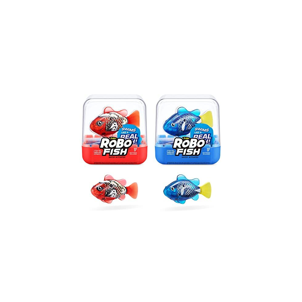 Robo Fish Series 3 Robotic Swimming Fish (Blue and Red) electronic pet fish, summer pool toy, bath toy, (2 Pack, Blue and Red)