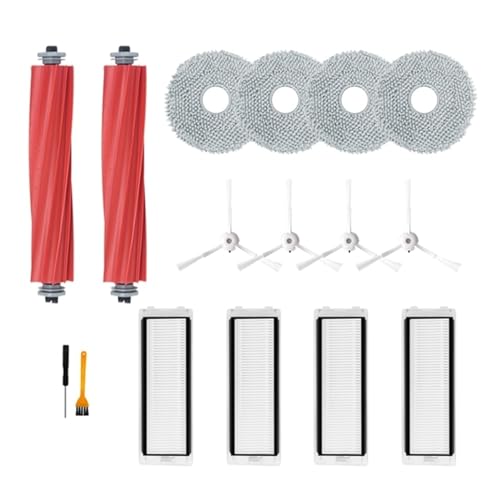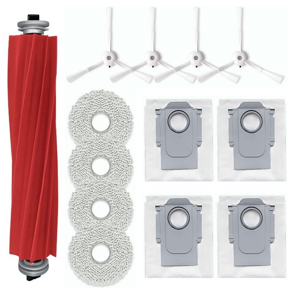 13 Pack Accessories Kit Replacement for Roborock P10/ Roborock Q Revo Robot Vacuum Cleaner, 1 Main Brush, 4 Side Brushes, 4 Dust Bag, 4 Mop Pads