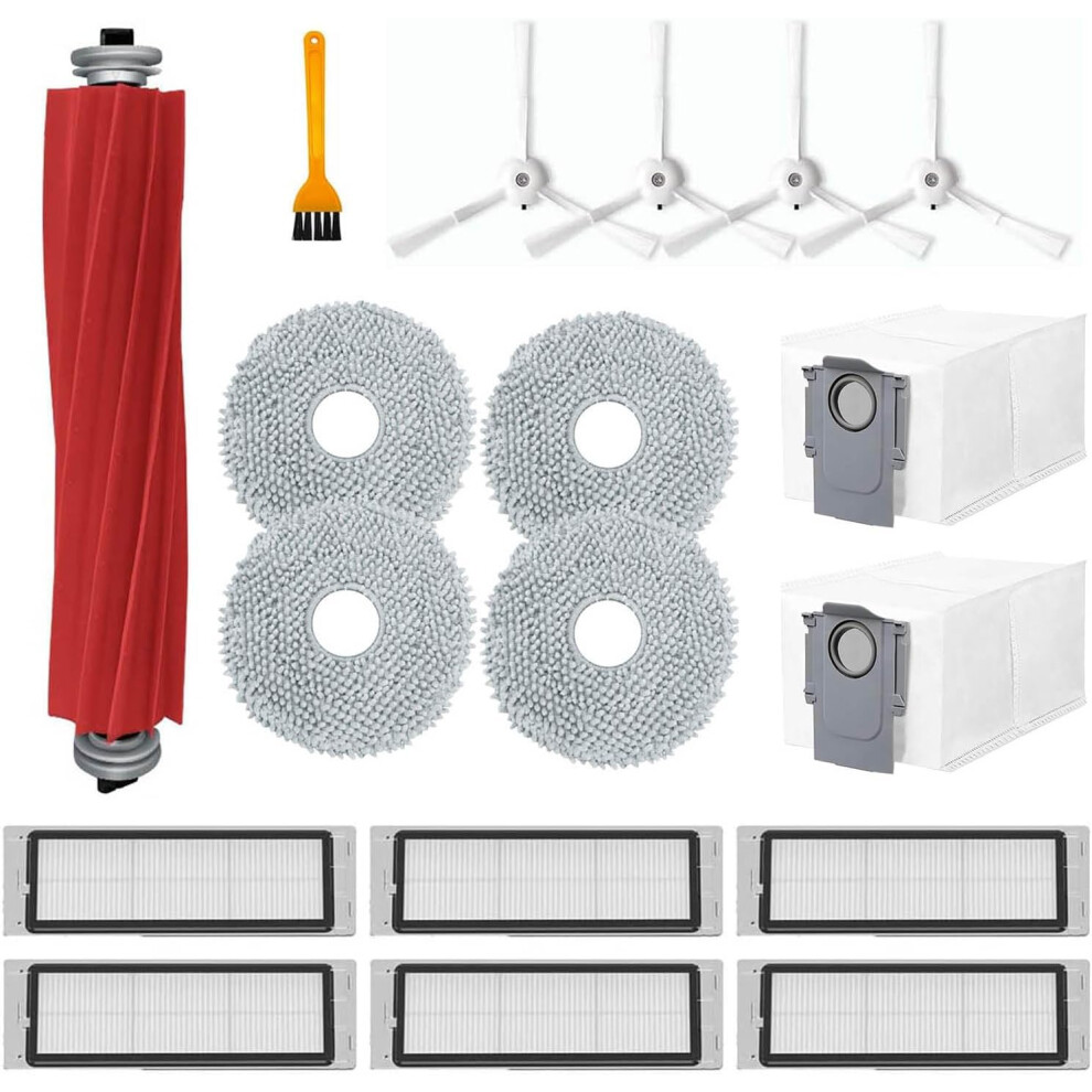 Accessories Kit Compatible with Roborock Q Revo Robtic Vacuum Cleaner, 2 Main Brush Roller, 4 Hepa Filters,4 Mop Pads,4 Dust Bags, 6 Side Brush,20 Pack Replacement Parts