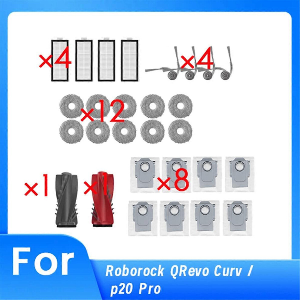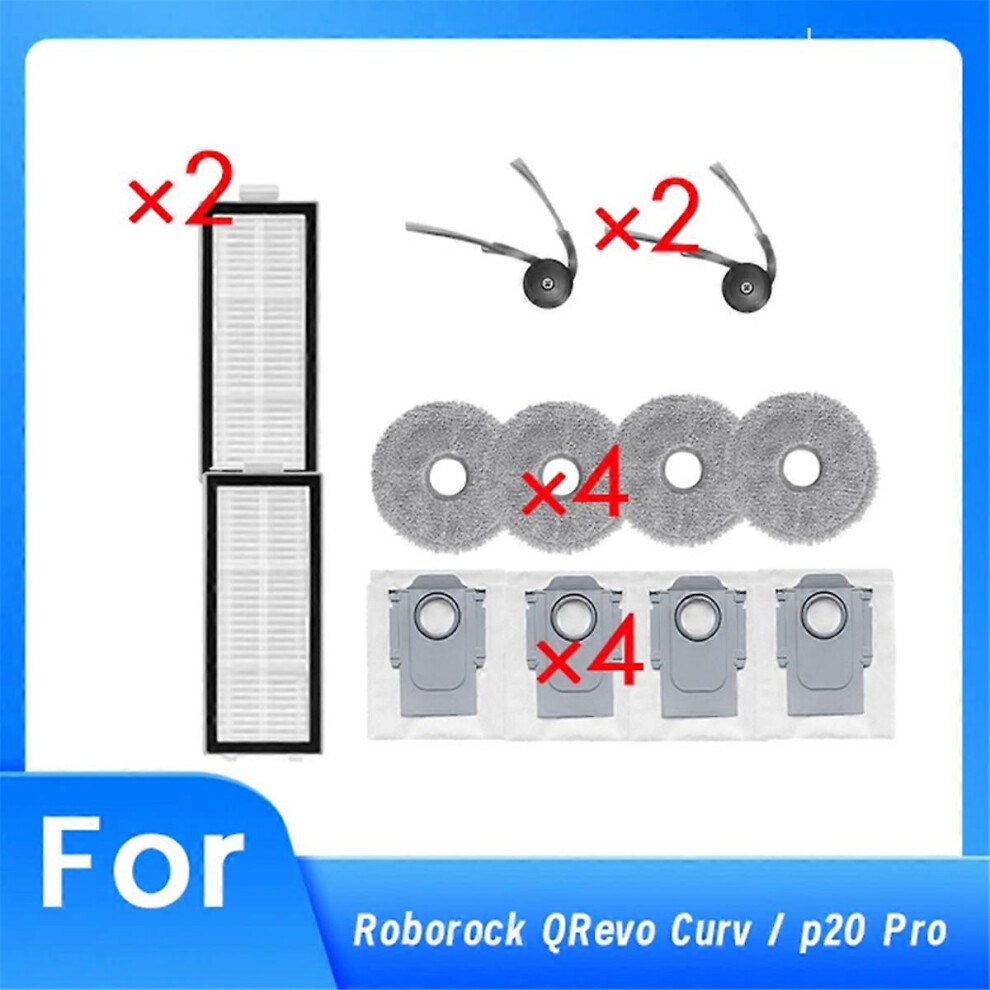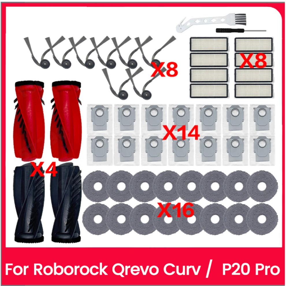 Suitable for Roborock Qrevo Curv/P20 Pro Robot Vacuum Accessories Side Brushes Dust Bags Mop Pads Filtersi