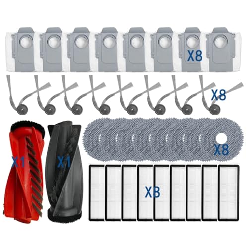 CIENUWPD Parts Main Roller Side Brush Hepa Filter Mop Cloth Dust Bag for Roborock Qrevo Curv / S5X / 5A1 / 5XC / 5AE / CurvC(8 side brushes)