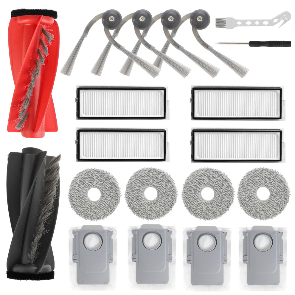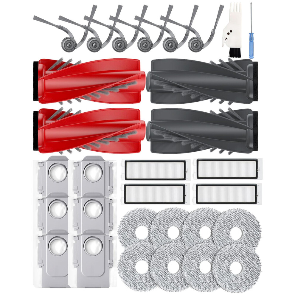 Yivy 30 Pack Replacement Accessories for Roborock Qrevo Curve/Curv/Curv S5X/Edge/Edge S5A/S5V/P20 Pro: 4 Main Brushes 6 Side Brushes 4 Hepa Filters 6
