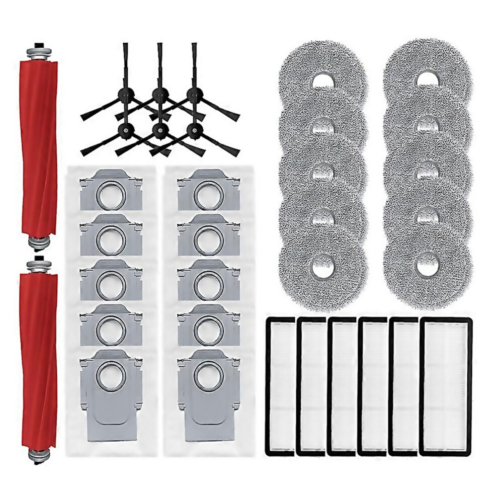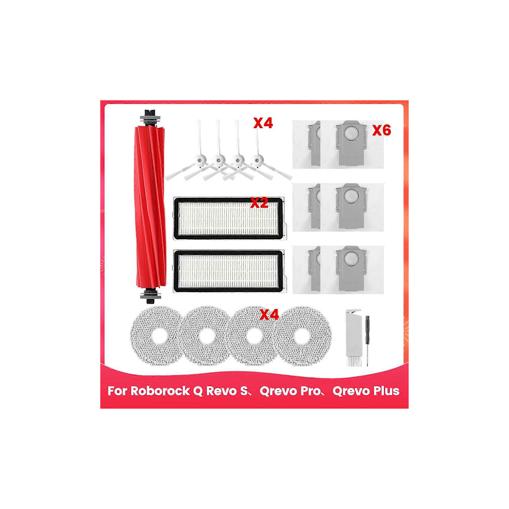 Accessories Kit for Roborock Qrevo S/QRevo MaxV/QRevo Pro/Qrevo Plus Robot Vacuum Cleaner Replacement Parts. 1 Main Roller Brush, 4 Hepa Filters, 4 Mop Pads, 6 Side Brushes, 4 Dust Bags, 1 Brush