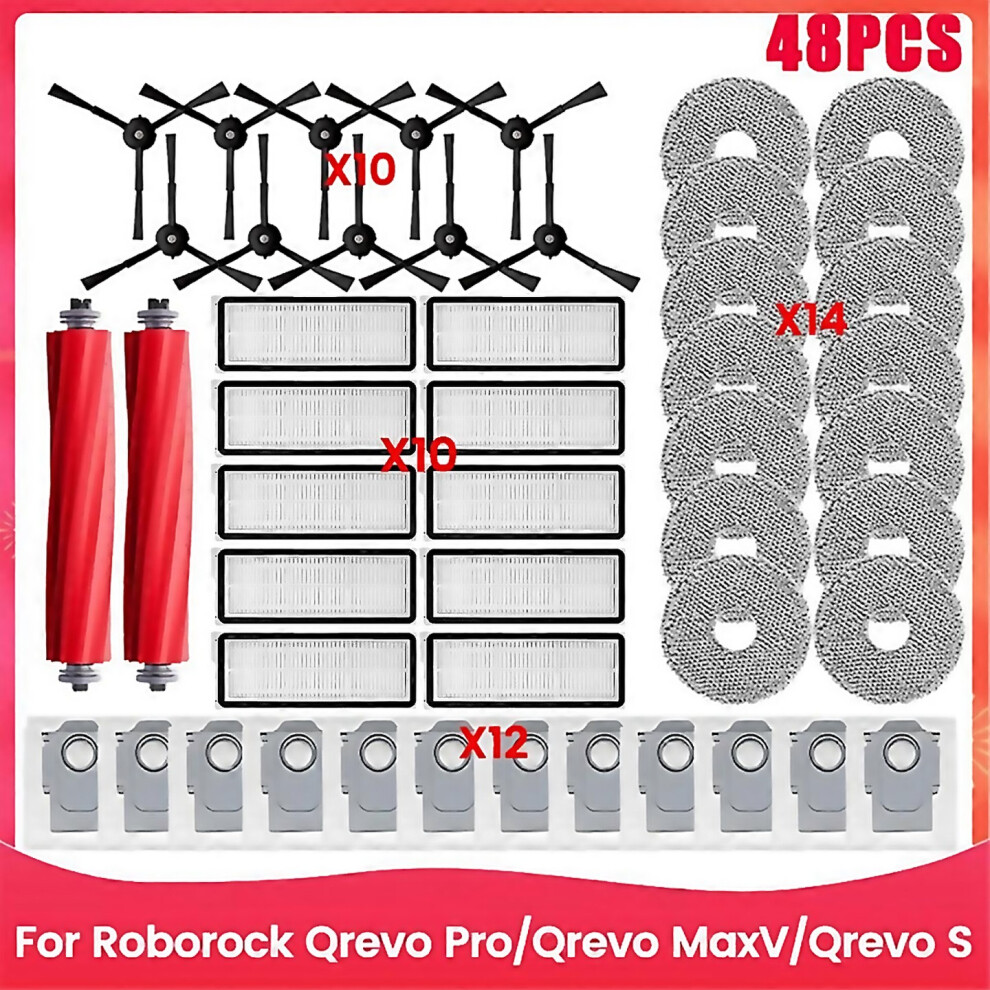 For 48pcs Brush Filter Dust Bag And Mop Cloth Kit For Roborock Qrevo Pro Qrevo Maxv Qrevo S Vacuum C
