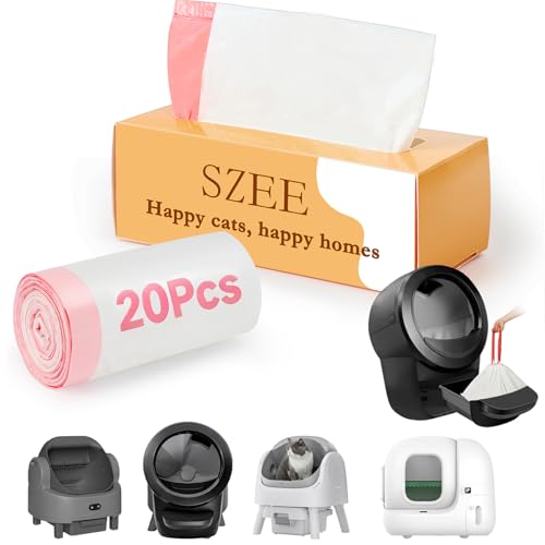 SZEE Self-Cleaning Cat Litter tray Liners 20 Pcs, Drawstring Automatic Cat Litter Box Waste Bags, Suitable for Robot 3&4, PURA MAX, PURA MAX 2, PURA X, S20, AutoScooper 11&12