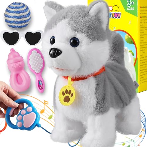 Marsjoy Husky Walking Dog for Kids Barking Interactive Musical Puppy Robotic Dog Toy Repeats What You Say Licking Tongue Wagging Tail Remote Control Toddler Toys for Girls Boys Birthday Gifts