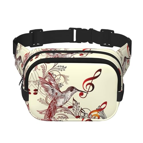 Flying Bird Musical Notes Square Double-Layer Waist Bag with All-Over Print,Durable Twill Fabric, Multi-Pocket Fanny Pack for Outdoor Sports Travel